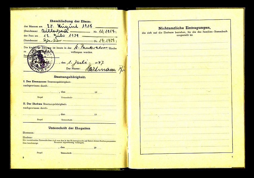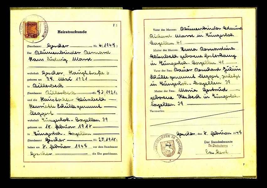 Da sie sich ihrer Liebe sicher waren, haben sie schon bald, nämlich im Jahre 1947, geheiratet. Die standesamtliche Trauung war am 8. Februar 1947. Aber wie für das katolische Münsterland typisch haben sie erst die kirchliche Trauung am 1. Juli 1947 als ihren Hochzeitstag gesehen und entsprechend gefeiert oder dessen gedacht. In ihrer über 50jährigen Ehe haben sie viele Höhe und Tiefen erlebt, dabei waren sie sich ihrer Beziehung immer sicher.