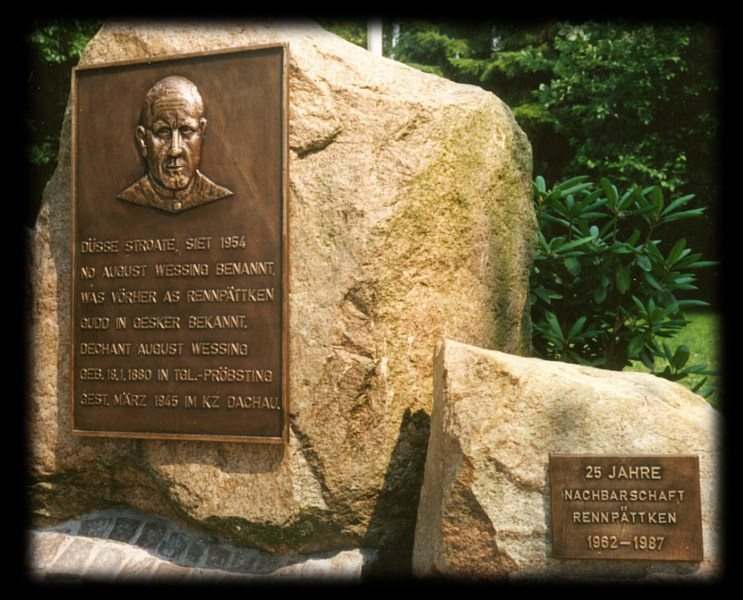 Im Jahre 1987 zum 25 jährigem Nachbarschaftsjubiläum wurde der Gedenkstein für August Wessing am Straßenbeginn aufgestellt und im Rahmen einer großen Nachbarschaftsfeier eingeweiht.