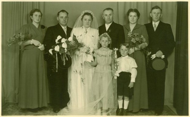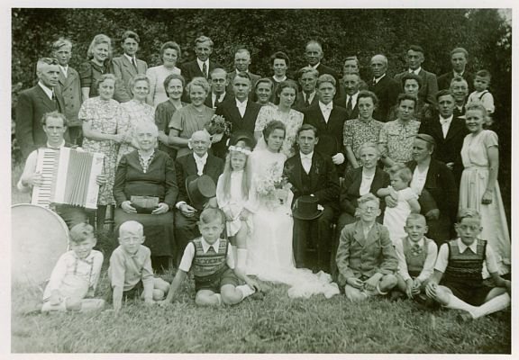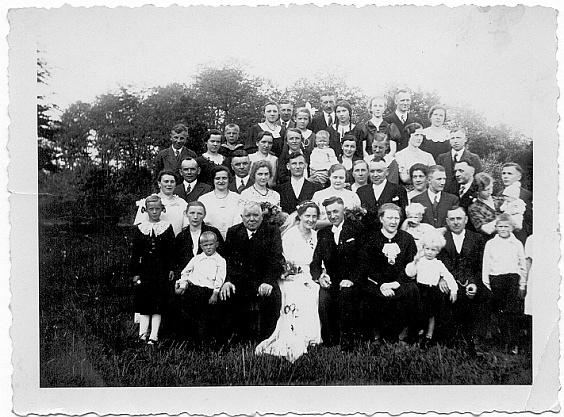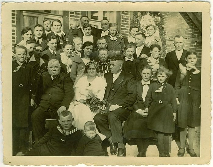 Oben finden Sie einige wenige Familienbilder der Familie Schulte gen. Steggert aus den frühen Jahren. Diese Bilder vermitteln die Stimmung des bäuerlichen Umfeldes und der Großfamilie, in der Elisabeth Marx geboren Schulte gen. Steggert aufgewachsen ist. Besonders zu den Hochzeiten versammelte sich die Familie zu einem Familienfoto.