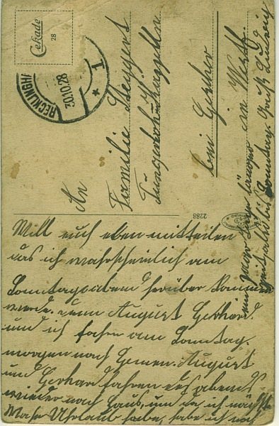 In dem Testament von Gertrud Schulte gen, Steggert, erhält man Auskunft über die Berufe der Kinder des Hofes im Jahre 1943 und deren Wohnorte. Einige der Kinder verdienten ihren Lebensunterhalt im nahegelegenen Ruhrgebiet. Hier eine Karte, die 1928 in die Heimat geschickt wurde.