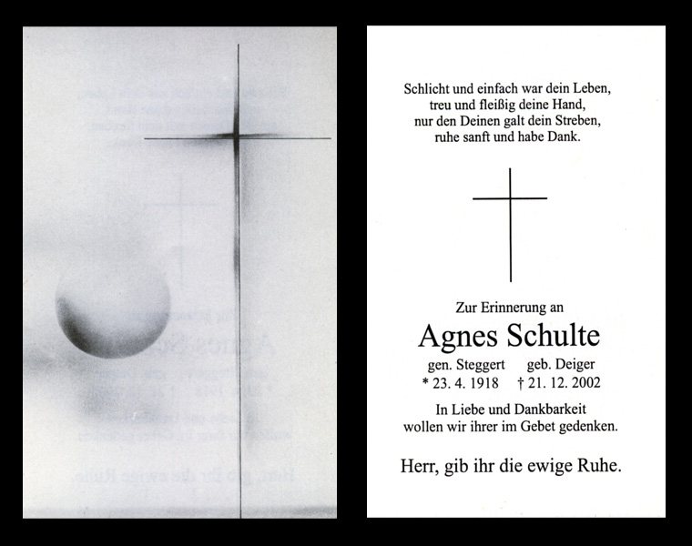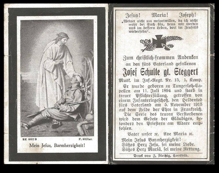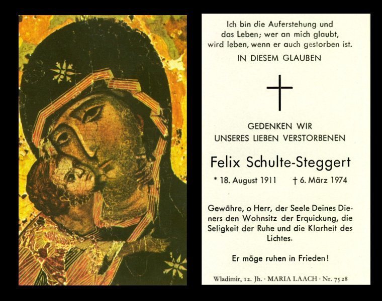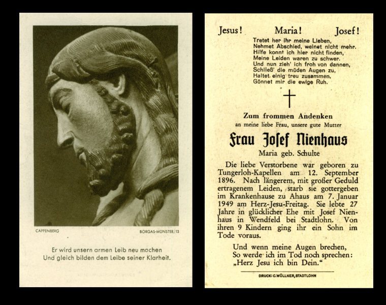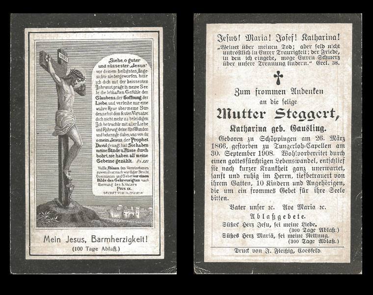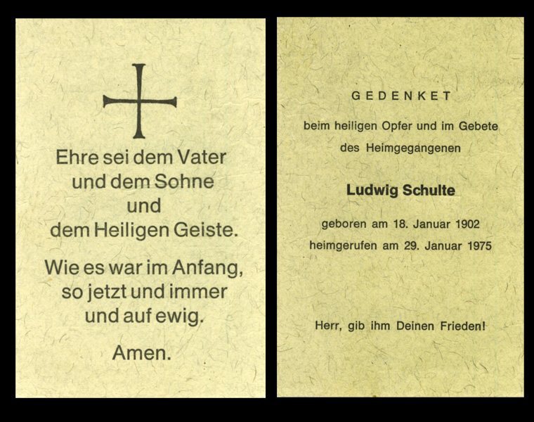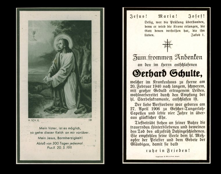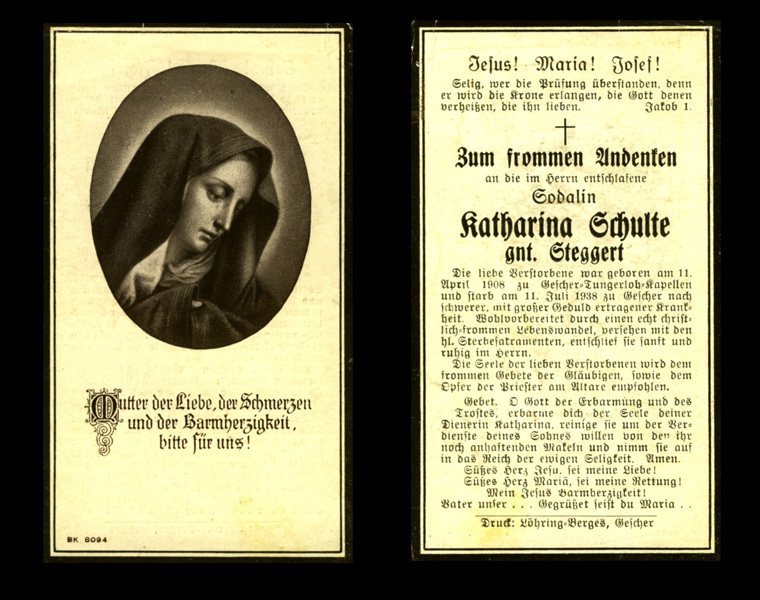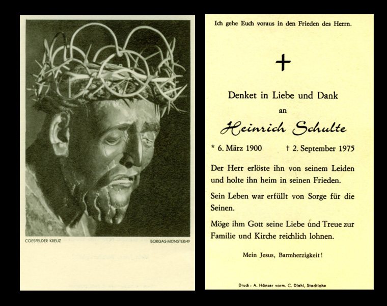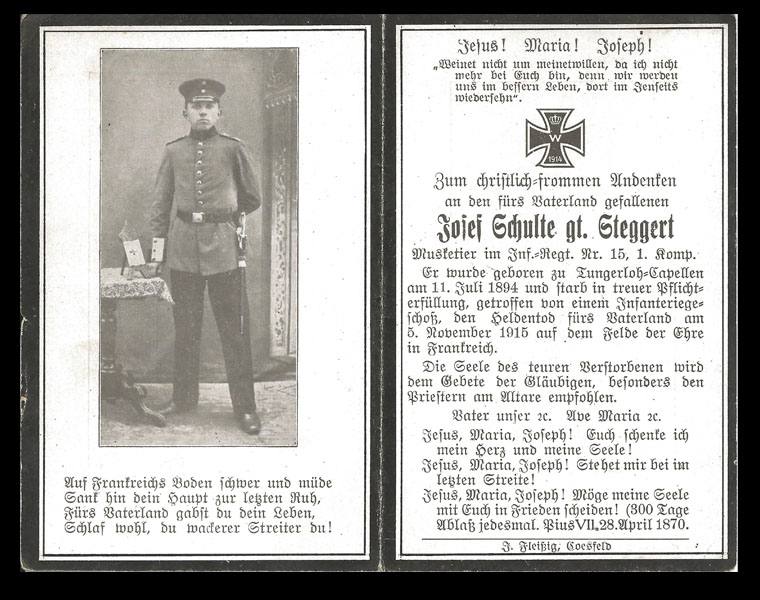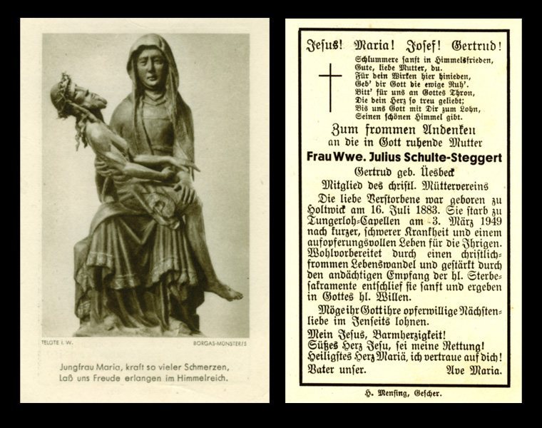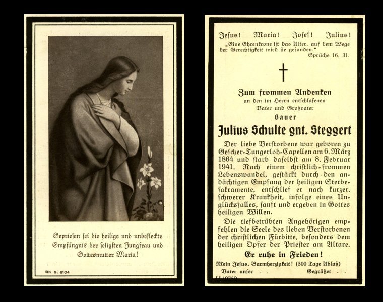 Schauen Sie weiter rechts: dort finden Sie weitere Informationen wie die Auszüge aus dem Stammbaum und die Totenzettel der Familie Schulte gen. Steggert.