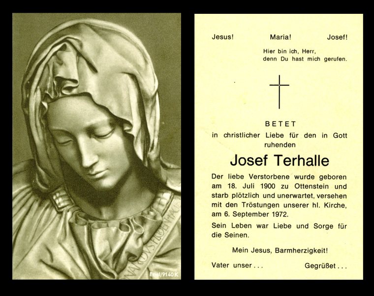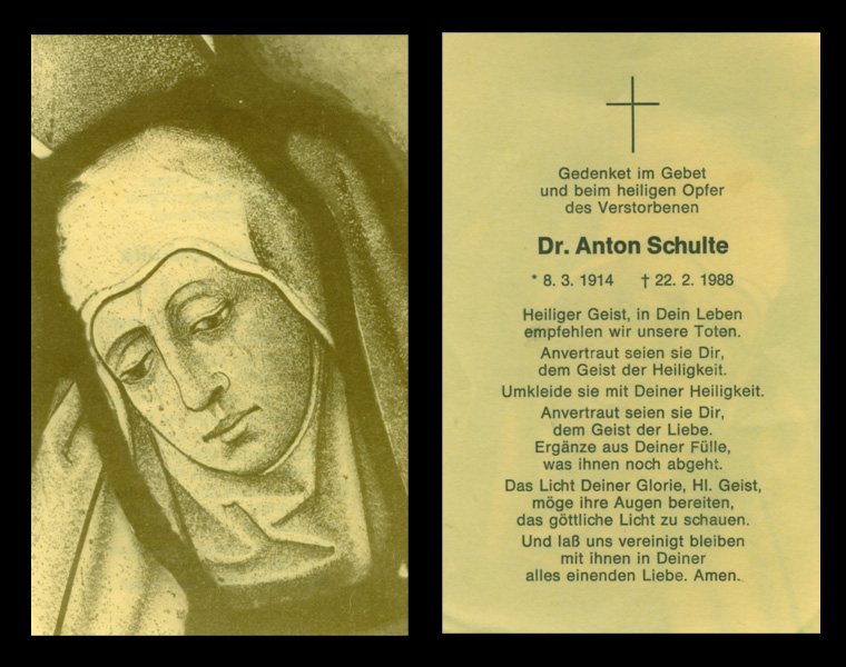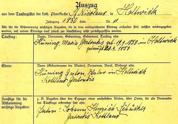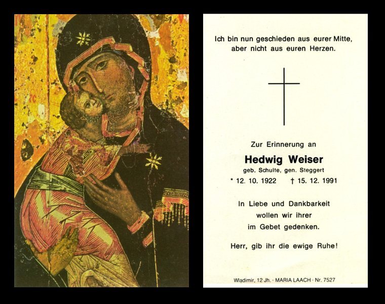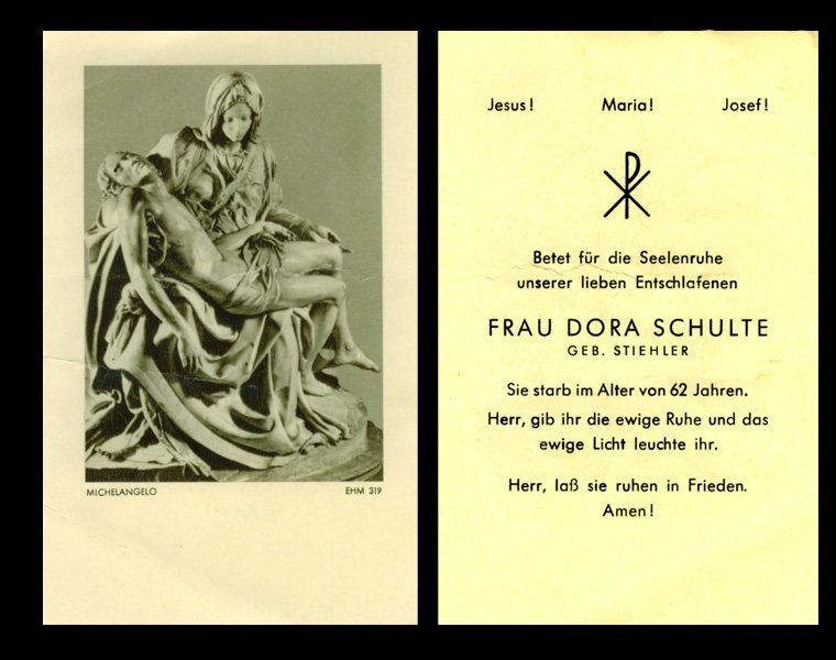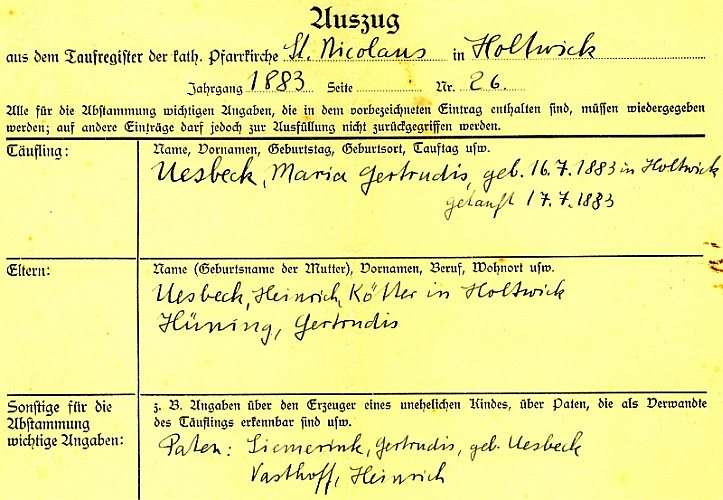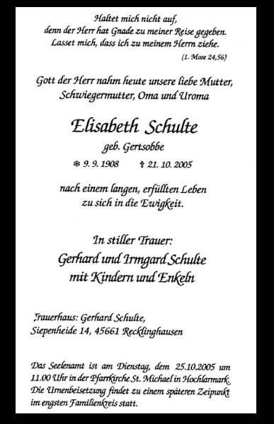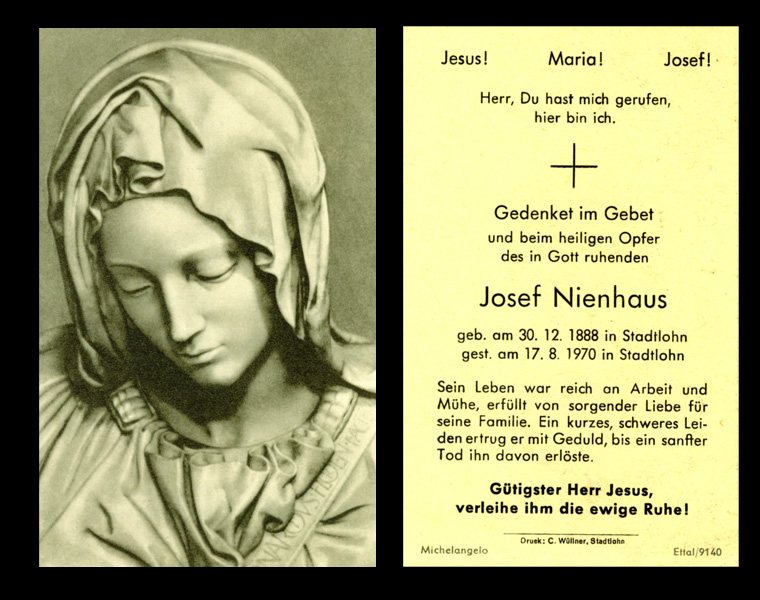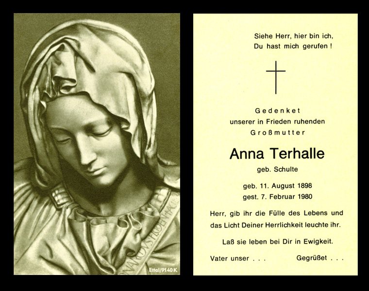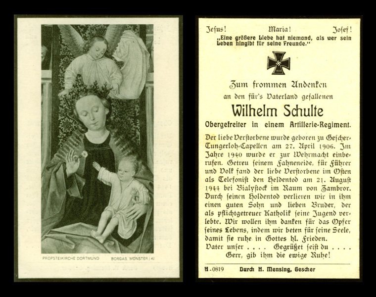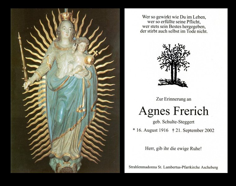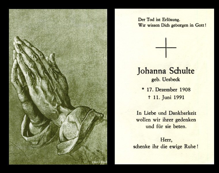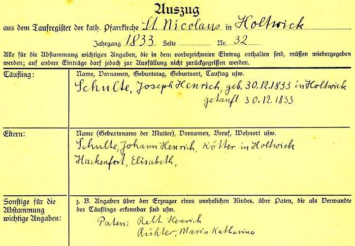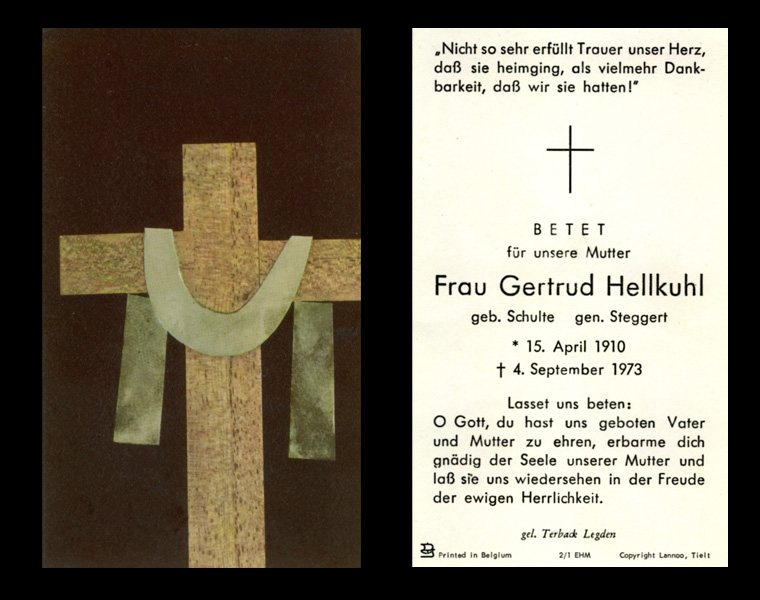 Schauen Sie weiter rechts: dort finden Sie weitere Informationen wie die Auszüge aus dem Stammbaum und die Totenzettel der Familie Schulte gen. Steggert.