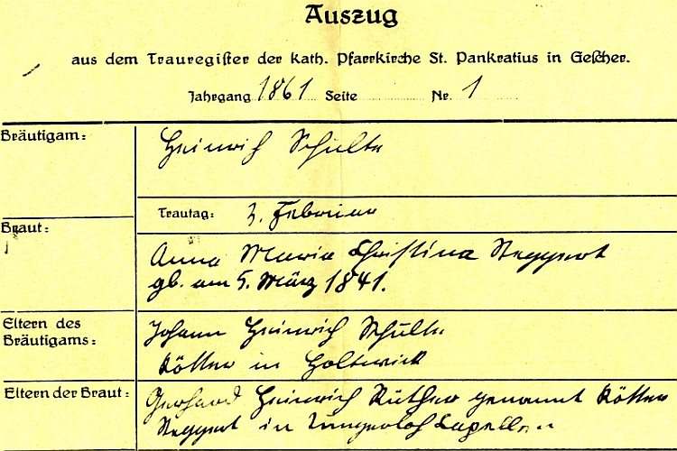 Informationen zu den Ahnen der Familie Schulte gen. Steggert