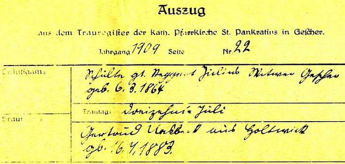 Ehevertrag Julius Steggert und Gertrud Uesbeck 1909