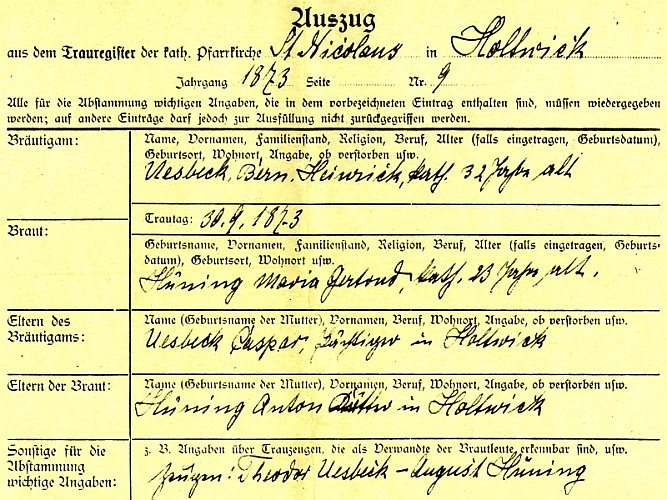 Hier finden Sie den Ehe- und Erbvertrag von Julius Schulte gen. Steggert und Gertrud Uesbeck als pdf Dokument: