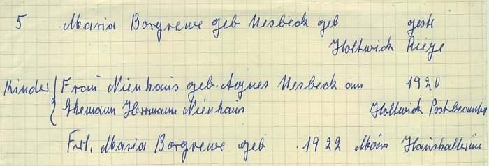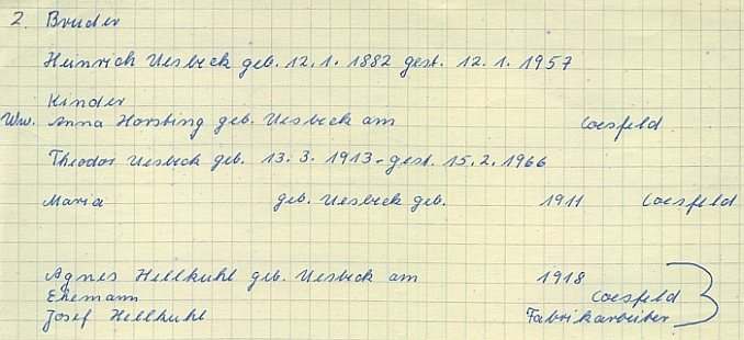 Ein Klick auf den linken Pfeil bringt Sie direkt zu weiteren Informationen zur Familie Uesbeck.